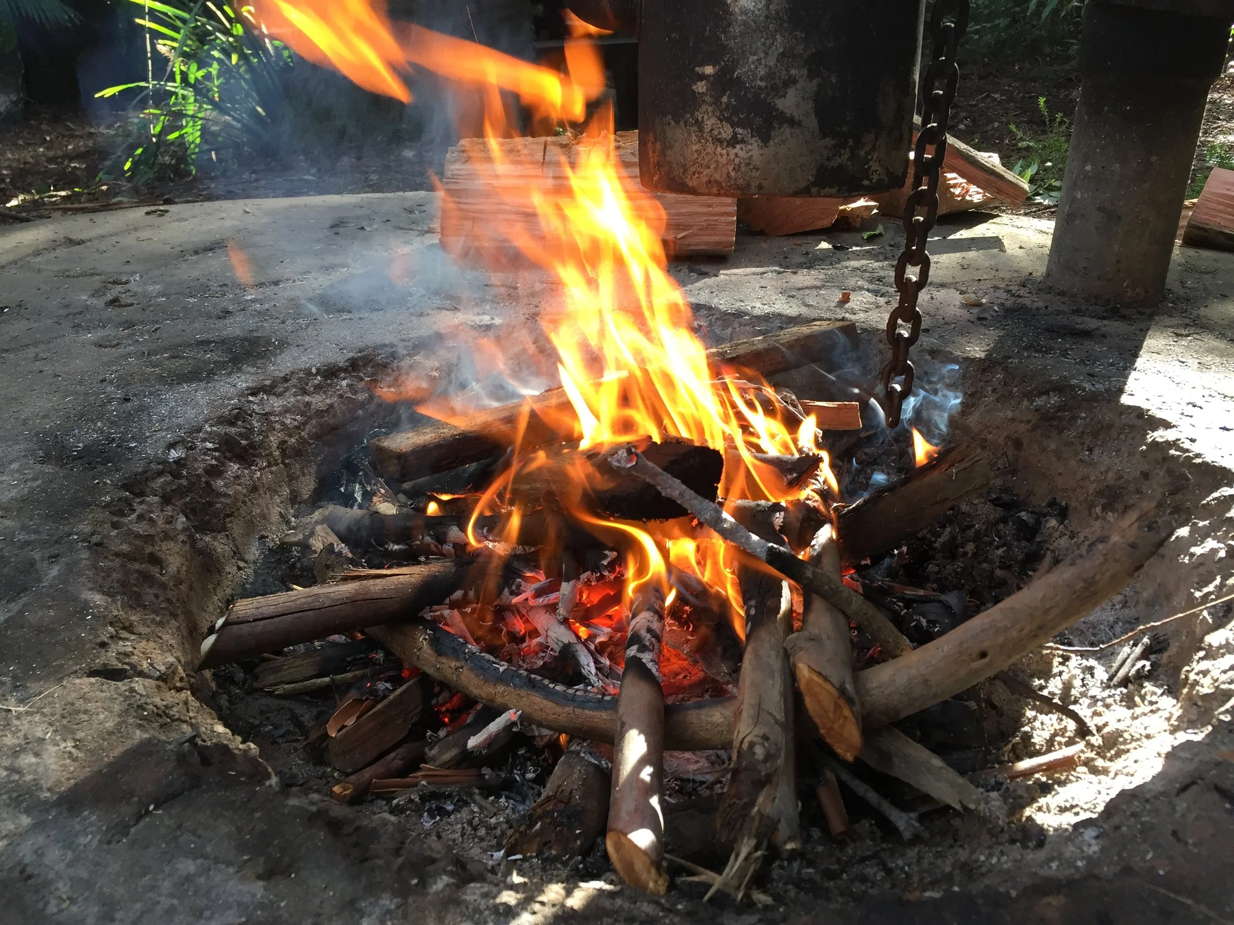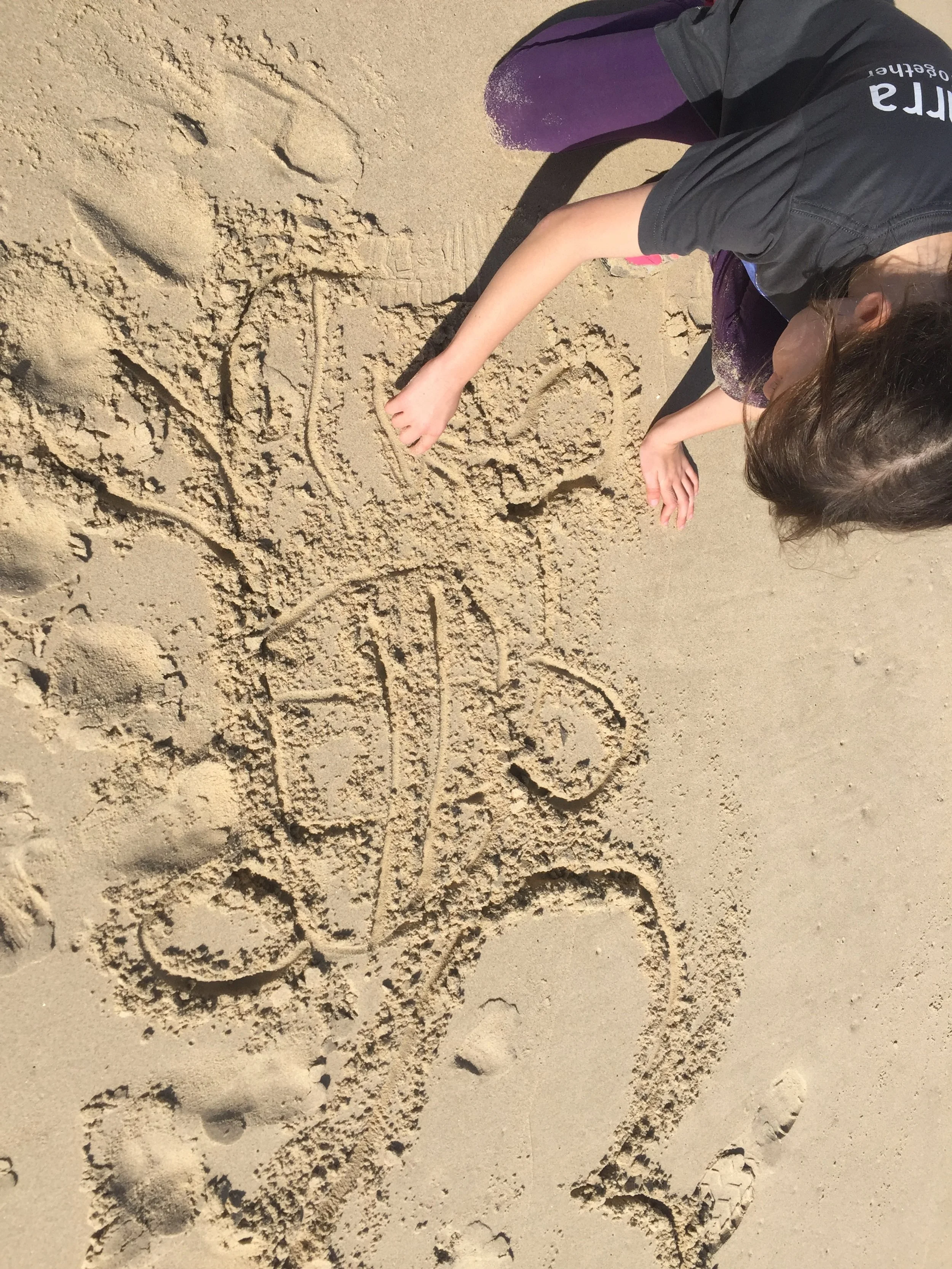 Yandaarra held a kids day that brought together Gumbaynggirr and non- Gumbaynggir families, ancestors, sea and sky Country and multiple non-human beings such as the Koala and Whale. The aim of the day was to hold an intercultural and intergenerational storytelling and ceremony day. The day involved 13 people, including Gumbaynggirr custodians who led the day’s planning, preparation and activities. The ages of the group were from 6 to 60 years old. The day included children’s sand play and creative expression to ‘say hello to Country’ (Scott’s Head); yarning led by Aunty Shaa Smith (Scott’s Head); cooking around the fire and sharing food as ceremony (Yarriabini); creating a gateway connecting dreaming times out of bamboo for ceremony (Yarriabini); and ‘Dunggirr, Koala, Brothers and the Caring Song of the Whale’ Storytelling and ceremony (Yarriabini).
